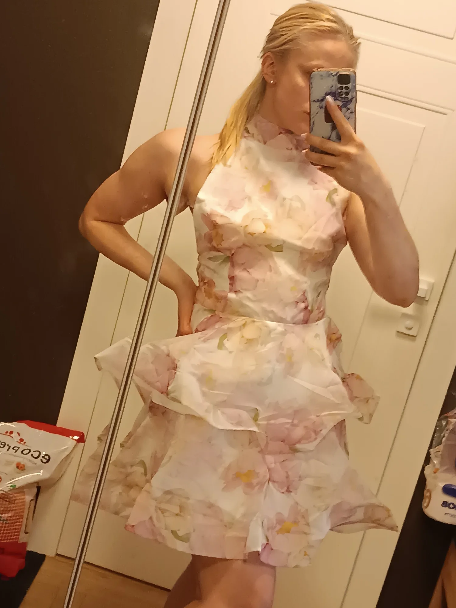 Awesome dress, met all expectations! ! ❤️ 😍 The quality is good, the skirt holds its shape perfectly, the size fits well. There is a small issue (a little bit of chest is visible on the sides), but this problem was easily solved by buying adhesive tapes, so it's not critical.